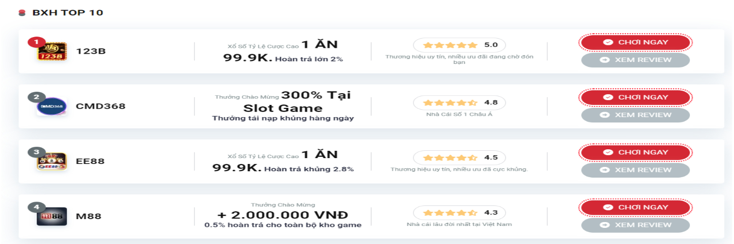 Tổng hợp top nhà cái uy tín siêu nét nhất ở Việt Nam và thế giới 2024. Website đánh giá công tâm nhà cái chuẩn nhất hiện nay.